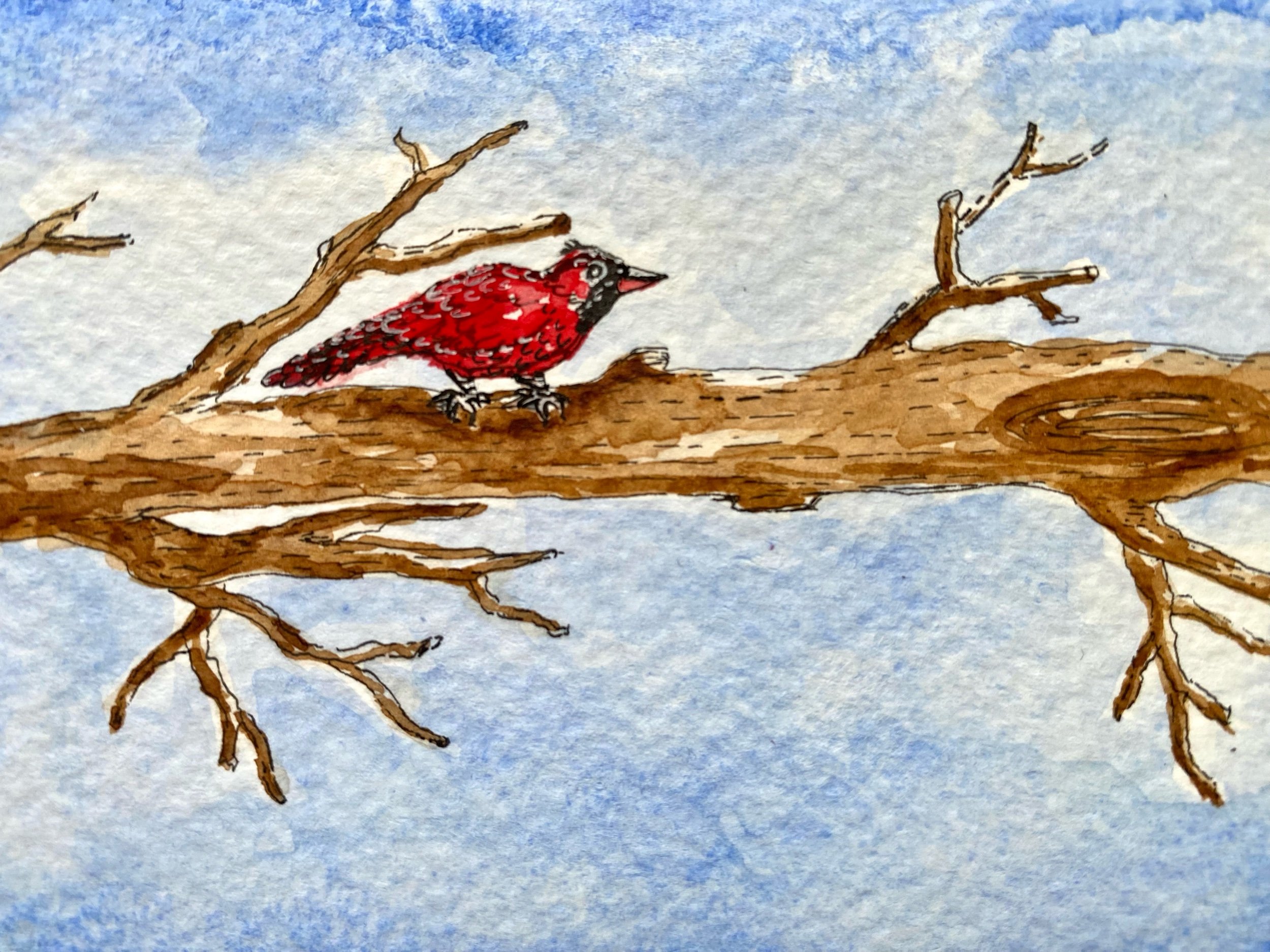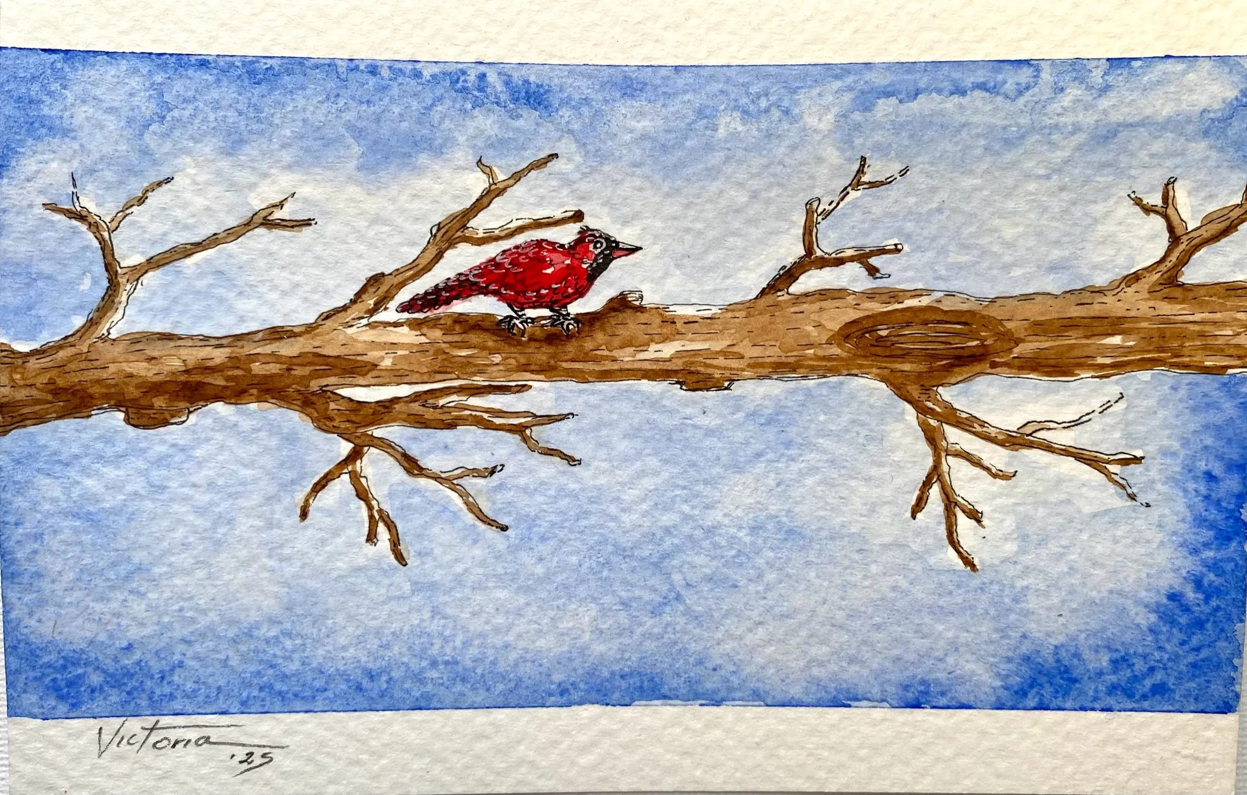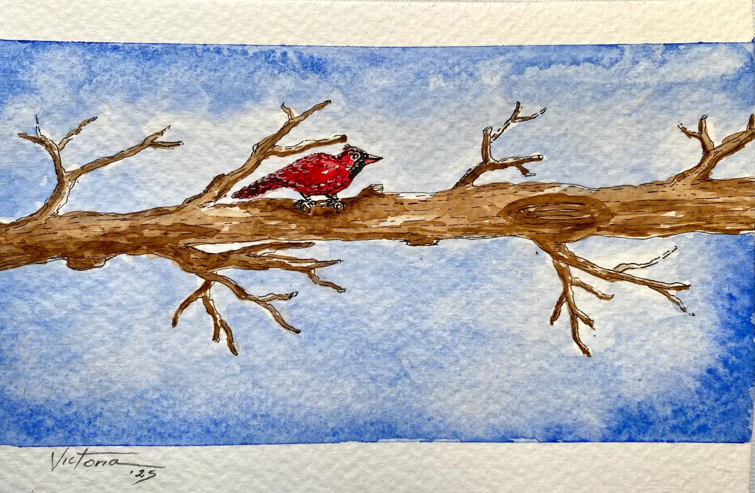 This unique piece is and original in watercolor style with an inspiration and meaning life in the world, this bird is going all the way up to the sky.